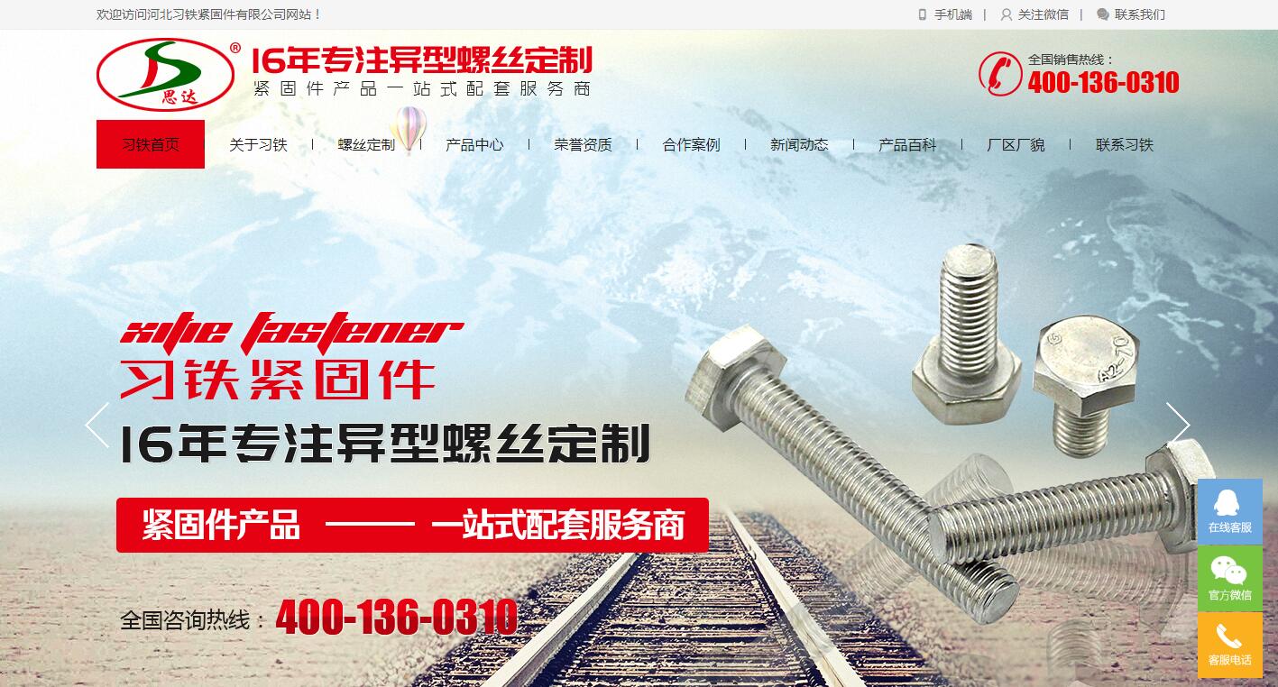 新聞?wù)?河北習(xí)鐵緊固件有限公司始建于一九九八年,坐落在中國最大的標(biāo)準(zhǔn)件集散地--中國永年標(biāo)準(zhǔn)件商城,京廣鐵路、107國道、京珠高速縱貫?zāi)媳?青紅高速橫穿東西,交通十分便利,地理位置優(yōu)越。公司的注冊商標(biāo)“思達(dá)”,本公司始終堅持“思客戶需求,達(dá)雙贏目標(biāo)”的方針。